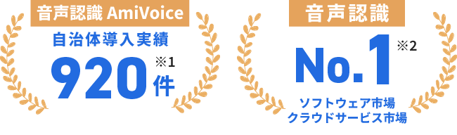 ※1 AmiVoice 全製品の自治体導入数。2025年6月現在。 ※2 出典:合同会社 ecarlate「音声認識市場動向2025」音声認識ソフトウェア / クラウドサービス市場