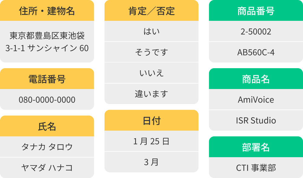 住所は建物の住所を聞き取ります。実際の住所をお話いただいても構いません。
