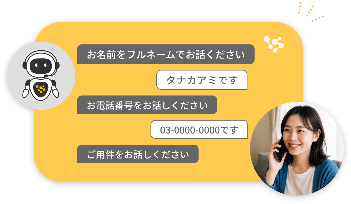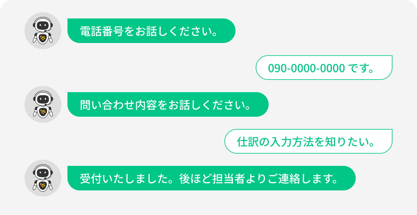 電話番号を聞き取ります。実際の番号をお話いただいても構いません。
