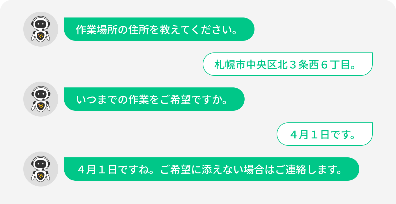 受付内容を、発信元番号へショートメッセージでお送りします。