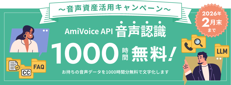 株式会社アドバンスト・メディア(本社:東京都豊島区、代表取締役会長兼社長:鈴木清幸 以下、アドバンスト・メディア)は、音声資産のさらなる価値創出と活用機会の拡大を目的に実施中の「音声資産活用キャンペーン〜AmiVoice API音声認識1,000時間無料〜」を、ご好評につき2026年2月末まで延長することを決定しました。