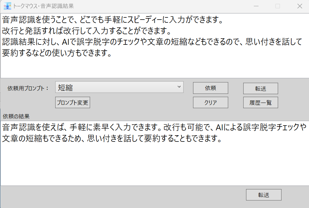 また生成AIとの連携により、誤認識箇所の校正や文章の推敲、要約が本アプリ内でワンストップに完結し、Windows PCへ転送することも可能です。